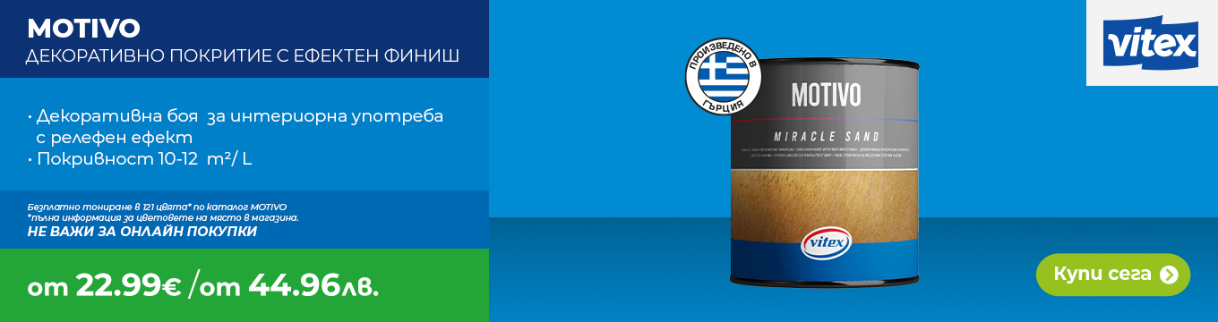 • Интериорни бои – налични в бяло и различни нюанси, подходящи за стени и тавани