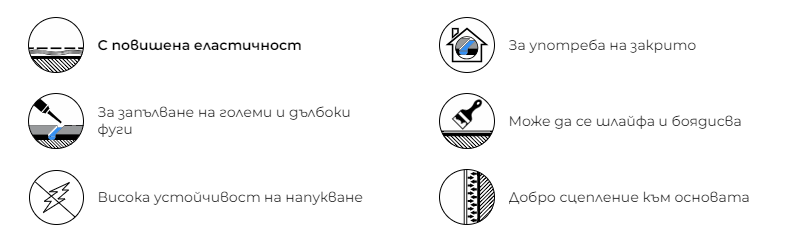 Използва се също и за фугиране на гипсови блокове и вътрешни декоративни корнизи и орнаменти.