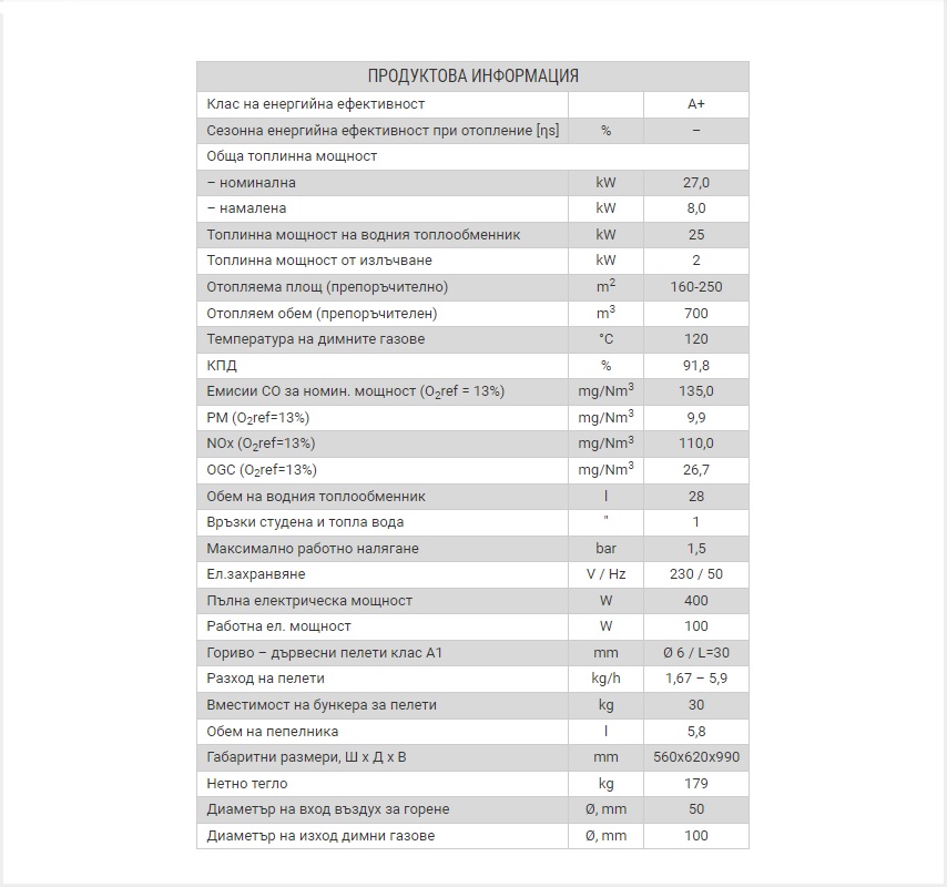 | НОМИНАЛНА МОЩНОСТ KW | 27.0 KW |