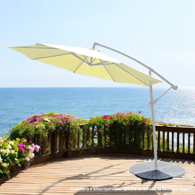 За да укрепите вашия чадър е нужно да поставите тежести върху неговата стойка.Направена от бетон, тежестта е устойчива на атмосферни влияния.