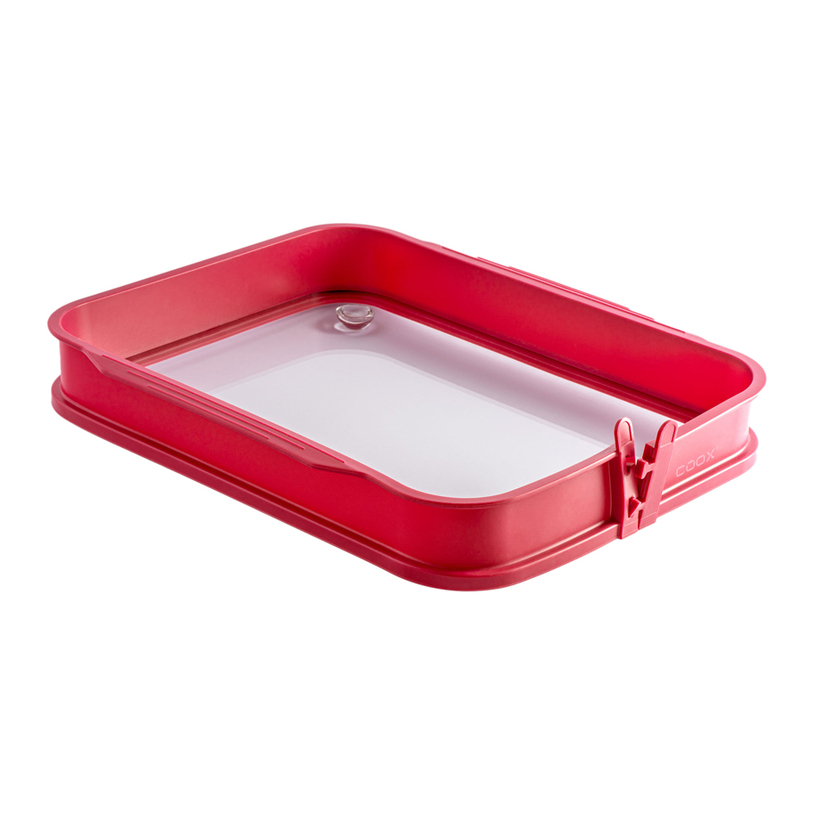 Печене, рязане, сервиране - всичко това е детска игра с тази невероятна форма със стъклена основа.Просто откопчайте силиконовия ръб и печените изделия са готови за сервиране.Можете да ги нарежете директно върху чинията.